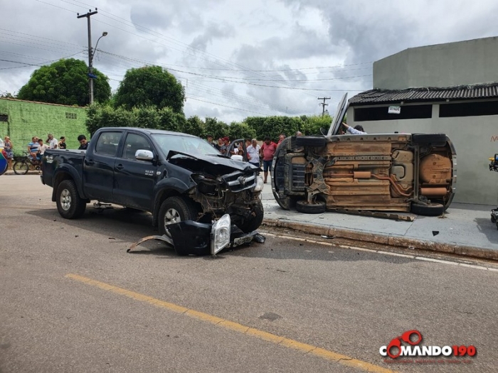 De acordo com informações o condutor da caminhonete Toytota Hilux seguia pela rua Goiânia sentido T-20 quando no cruzamento colidiu com um veículo HB20 que havia cruzado a preferencial.