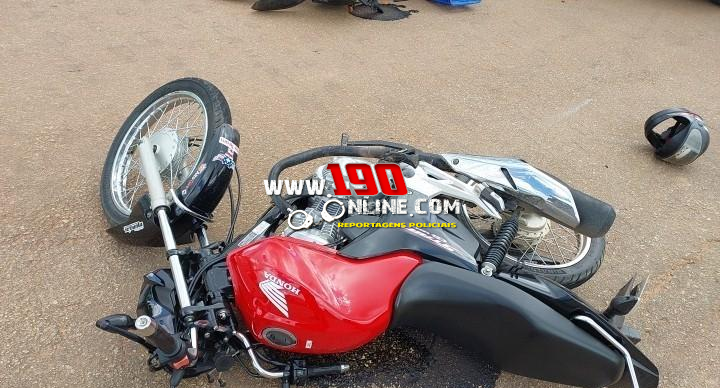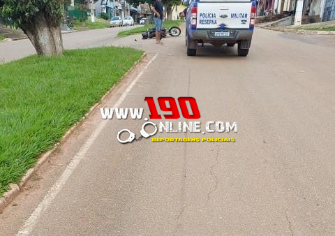Um sinistro de trânsito envolvendo duas motocicletas foi registrado na tarde desta terça-feira (15) no cruzamento da Avenida Brasil com a Rua Pernambuco, em frente ao número 4038, nas proximidades de uma clínica veterinária.