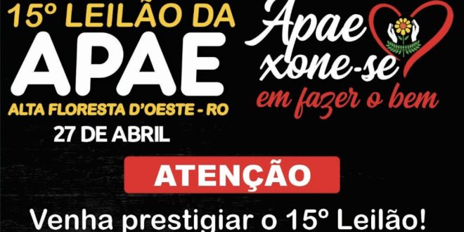 No próximo dia 27 de abril, a cidade de Alta Floresta D’Oeste (RO) será palco de mais uma edição do tradicional Leilão da APAE. Em sua 15ª edição, o evento tem como objetivo arrecadar recursos para a manutenção das atividades da instituição, que presta importantes serviços à comunidade.