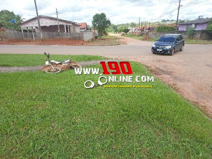 Um sinistro de trânsito foi registrado na manhã desta quarta-feira, em Alta Floresta D’Oeste, no cruzamento da Rua Maranhão com a Avenida Izaura Kiurant. O incidente envolveu um automóvel e uma motocicleta que trafegavam no mesmo sentido.