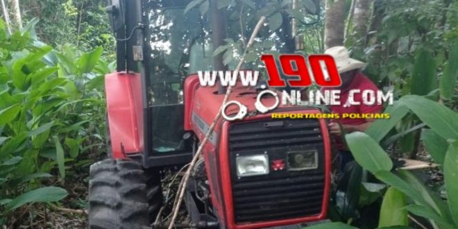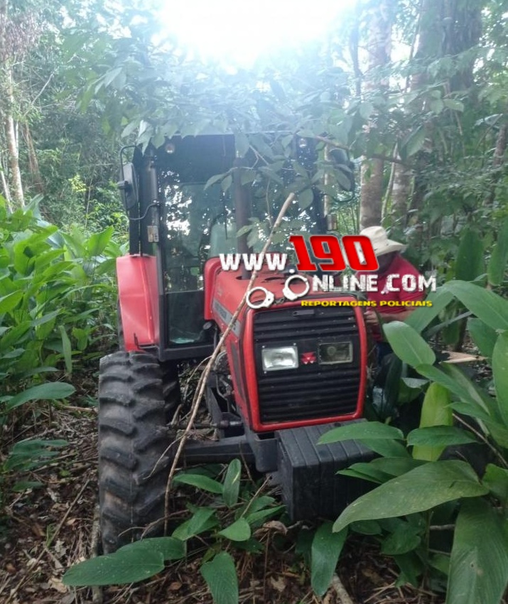 Ao chegarem à propriedade, a equipe foi recebida por um homem que se apresentou como funcionário do local. Ele negou que o trator estivesse ali, afirmando que o maquinário se encontrava em outra área. Diante das contradições e suspeitas levantadas, os policiais iniciaram buscas na região de mata próxima, onde encontraram o trator camuflado entre a vegetação. A chave do veículo, no entanto, não foi localizada de imediato.