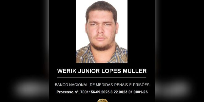 Werick é considerado foragido da Justiça e possui mandado de prisão preventiva expedido pelo crime de homicídio. A Polícia Civil pede ajuda da população para localizá-lo. Informações podem ser repassadas de forma anônima pelo telefone 197. A identidade do denunciante será mantida em sigilo absoluto.
