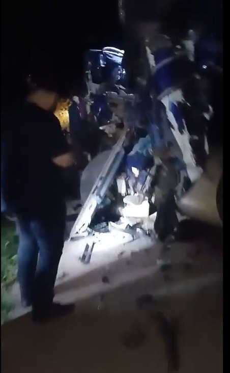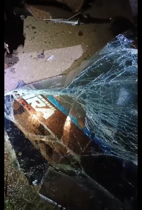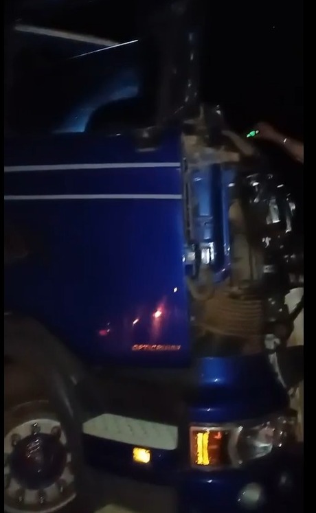 De acordo com as primeiras informações, a colisão foi frontal entre uma carreta 440 de cor azul e um 9 eixo boiadeiro. O impacto foi violento e deixou a cabine da carreta completamente destruída.