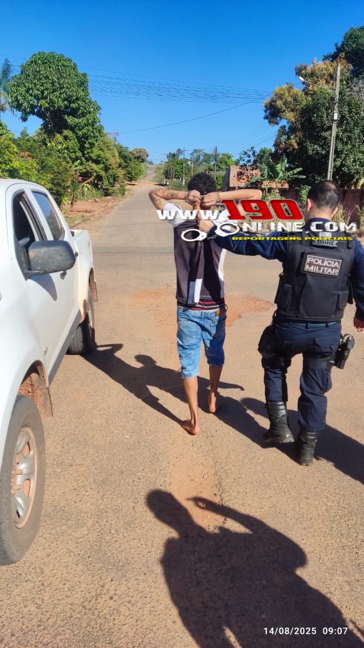 A perícia foi acionada e realizou os levantamentos necessários, enquanto a guarnição efetuava buscas nas imediações e colhia informações com moradores. Durante as diligências, foi constatado que o cartão bancário subtraído havia sido utilizado em compras realizadas em um mercado local. A partir dos dados da transação, a equipe localizou o endereço.