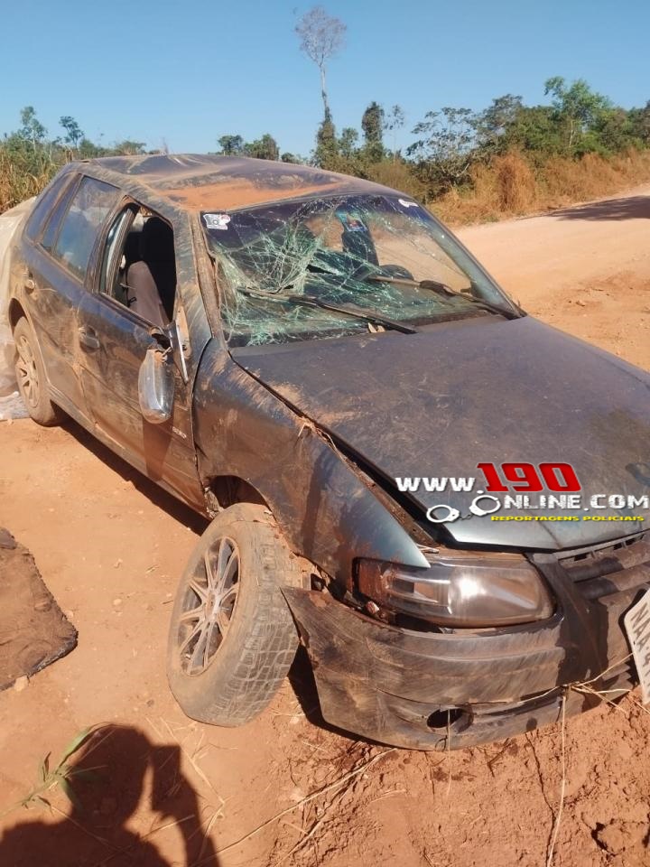 No local do acidente, foram constatados danos significativos no automóvel, incluindo avarias nas portas do lado direito, retrovisores, para-brisas dianteiro e traseiro, roda dianteira e teto.