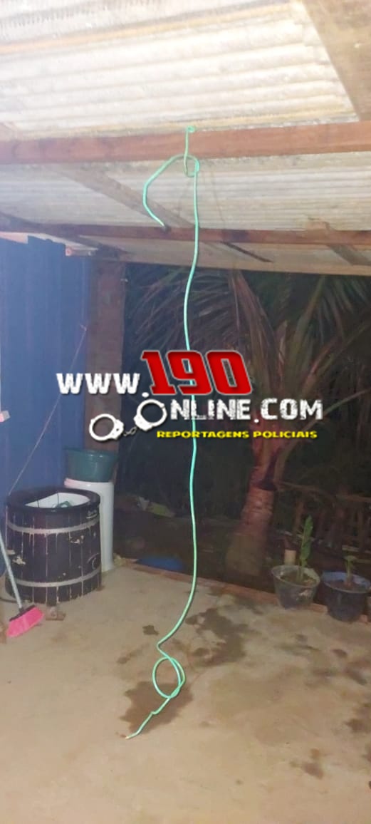No local, os policiais encontraram um homem pendurado por um fio elétrico, preso pelo pescoço, enquanto a esposa tentava desesperadamente mantê-lo erguido. Diante da situação, a equipe agiu rapidamente, retirando a vítima e verificando que ainda apresentava sinais vitais.
