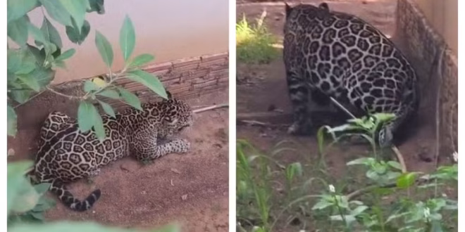 Uma onça-pintada invadiu uma residência na manhã desta segunda-feira (22) em Extrema, distrito de Porto Velho.