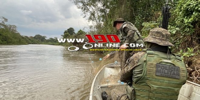 Ao recolher as redes, os policiais constataram ainda a captura de aproximadamente 5 quilos adicionais de pescado. A embarcação e o motor foram apreendidos, enquanto os peixes em condições de consumo foram destinados à comunidade indígena da Aldeia São Luiz. Os demais petrechos foram recolhidos e entregues às autoridades competentes.