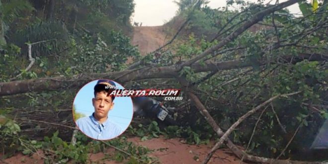 URGENTE – Jovem morreu após bater em árvore que caiu durante a chuva no travessão que liga as linhas 184 e 188 em Rolim de Moura