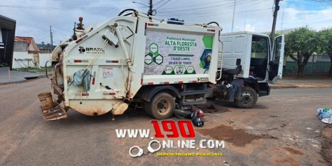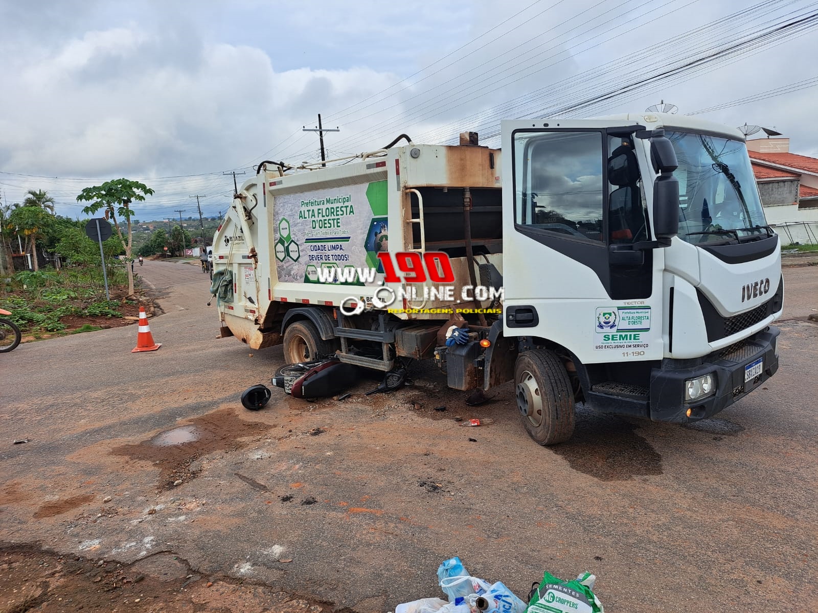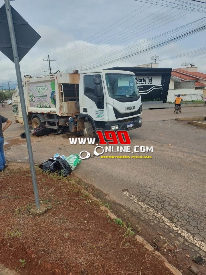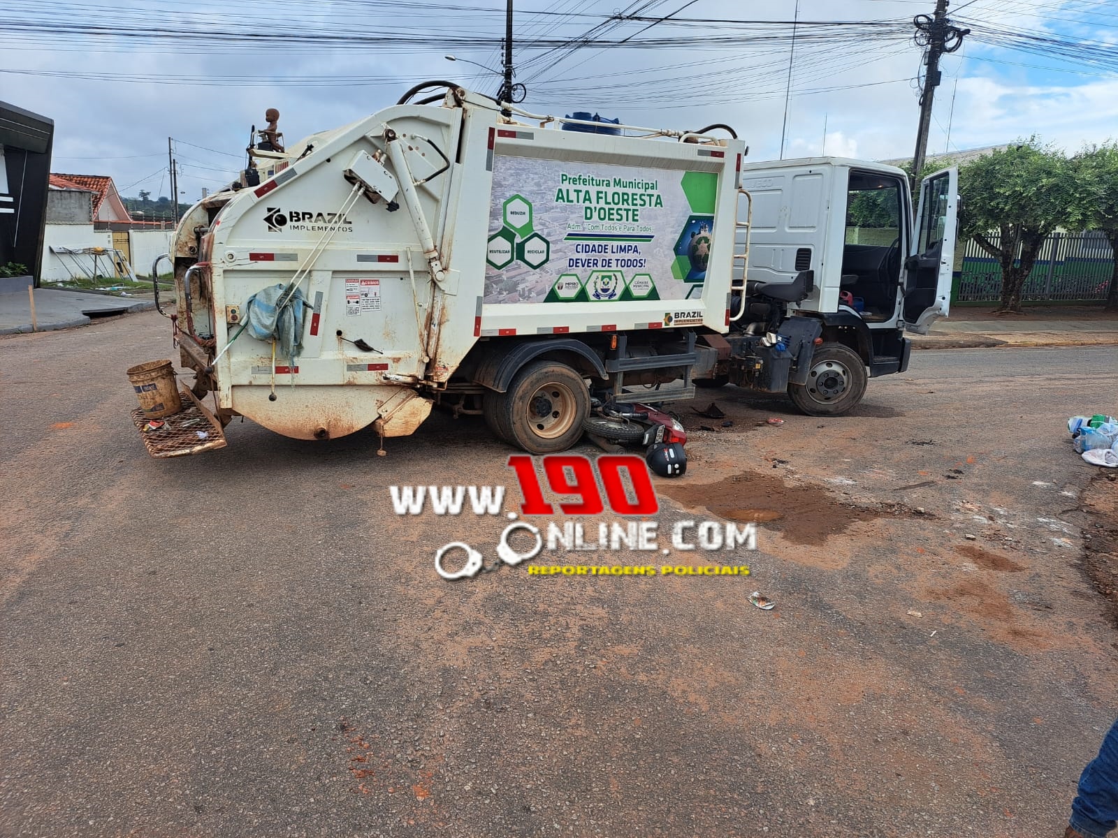 Na manhã desta terça-feira (28), equipes policiais atenderam a um sinistro de trânsito ocorrido em via pública, envolvendo um caminhão de coleta de lixo e uma motocicleta.