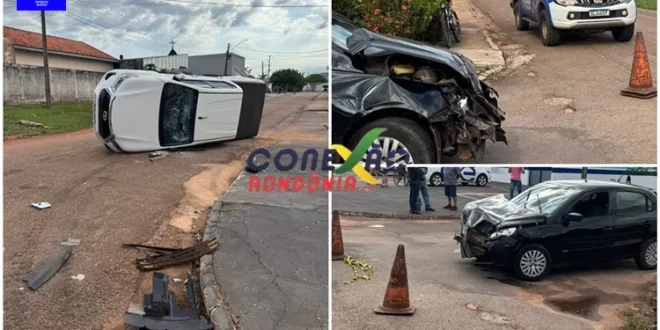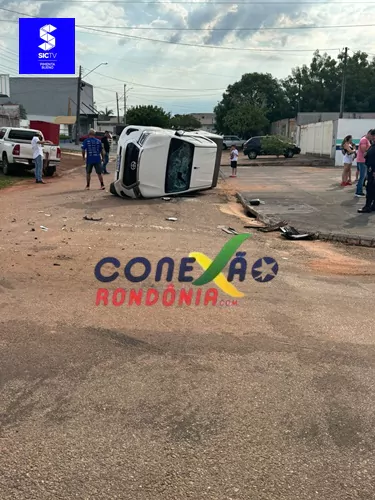 Na tarde desta quarta-feira, 1º de outubro, um acidente de trânsito chamou a atenção de moradores no centro de Pimenta Bueno (RO). Uma caminhonete tombou após colidir com um carro de passeio no cruzamento da Rua Fagundes Varela com a Avenida Rotary Club.
