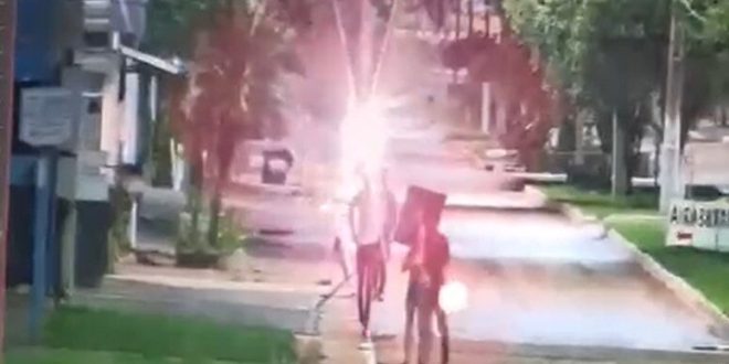 De acordo com informações, imagens registraram o momento em que o grupo, aparentemente formado por jovens, puxava e danificava a placa, que faz parte do patrimônio público municipal.