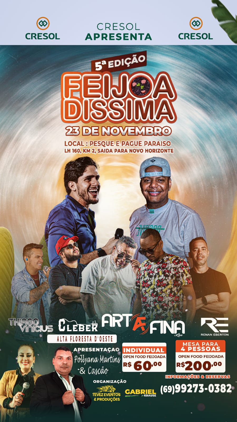 Prepare-se para o evento mais esperado do ano! No dia 23 de novembro, o clima de festa vai tomar conta do Pesque e Pague Paraíso (LH 160, km 2 – saída para Novo Horizonte) com muita música boa, comida deliciosa e gente animada! 🎶💃