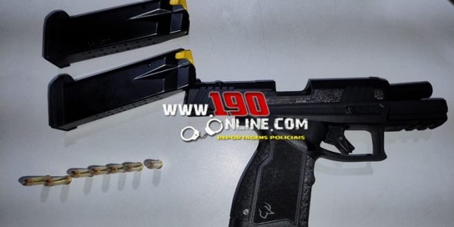 O automóvel foi localizado nas proximidades do Auto Posto Pioneiro e abordado com apoio da equipe Força Tática. Durante a revista, a arma uma pistola 9mm, e sete munições calibre 22 foram encontradas no porta-luvas.