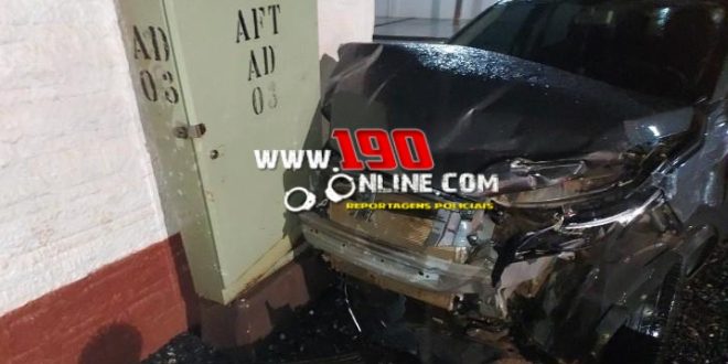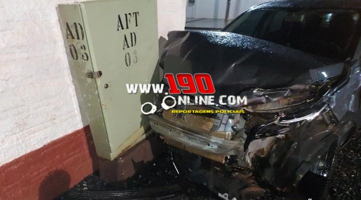Com a força da batida, o Fiat Argo foi arremessado contra a base de uma estrutura de telefonia instalada às margens da via, causando danos tanto ao veículo quanto ao equipamento.