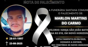 Um grave acidente de trânsito registrado na manhã deste domingo (24) resultou na morte de um jovem na linha 156, região sul de Novo Horizonte D’Oeste – RO. A vítima foi identificada como Marlon Martins do Carmo, de 28 anos. De …
