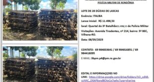 O 3º Batalhão de Polícia Militar do Estado de Rondônia, por meio da comissão designada pela Portaria nº 1854, de 27 de fevereiro de 2025, torna público o Edital de Leilão para venda de lotes de madeira (itaúba) apreendidos em …